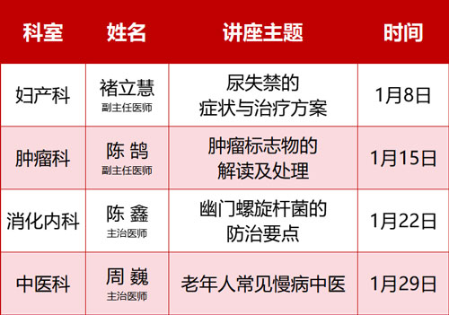 苏州永鼎医院1月门诊健康讲座预告...[详细]